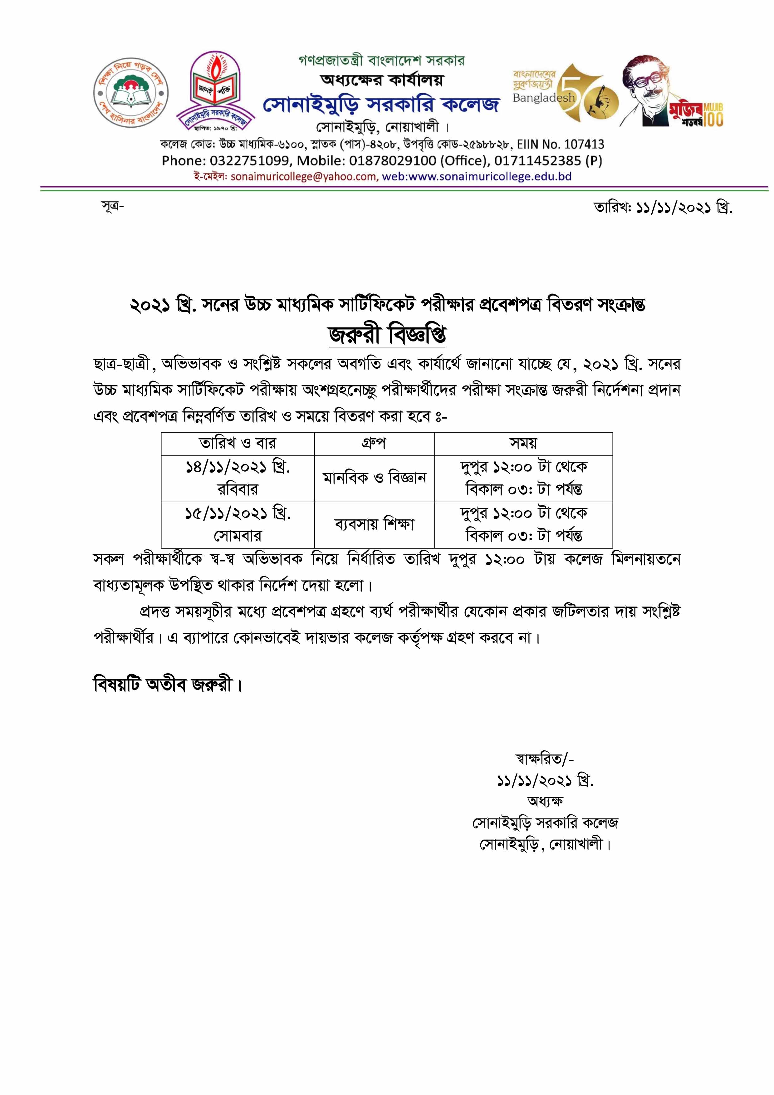 ????????? ?????? ???? ?????: ?????????, ??????: ?????????,????????, ????????? School Code : 6100 Email : sonaimurigovcollege@gmail.com Contact Number: 8801711452385