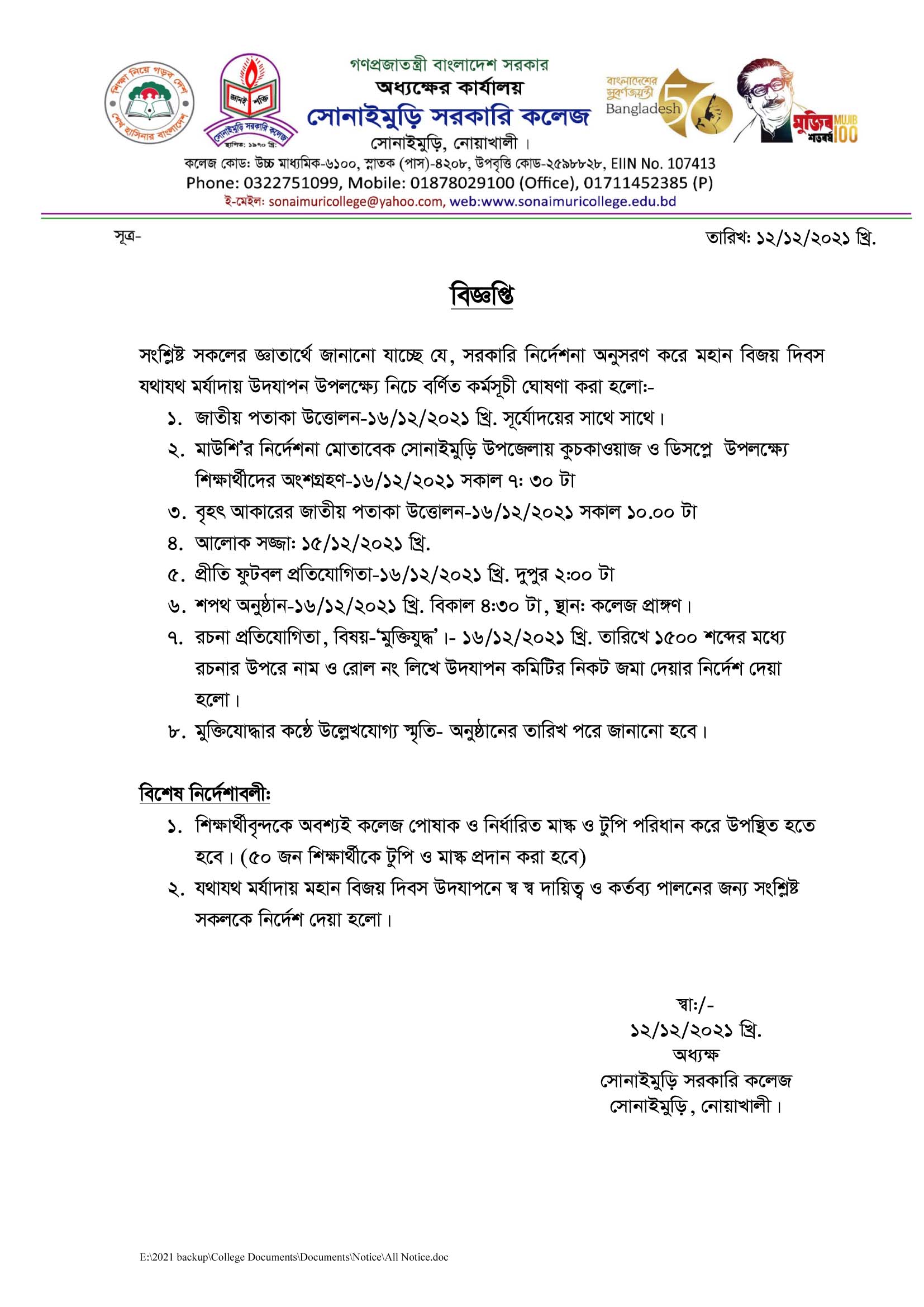 ????????? ?????? ???? ?????: ?????????, ??????: ?????????,????????, ????????? School Code : 6100 Email : sonaimurigovcollege@gmail.com Contact Number: 8801711452385