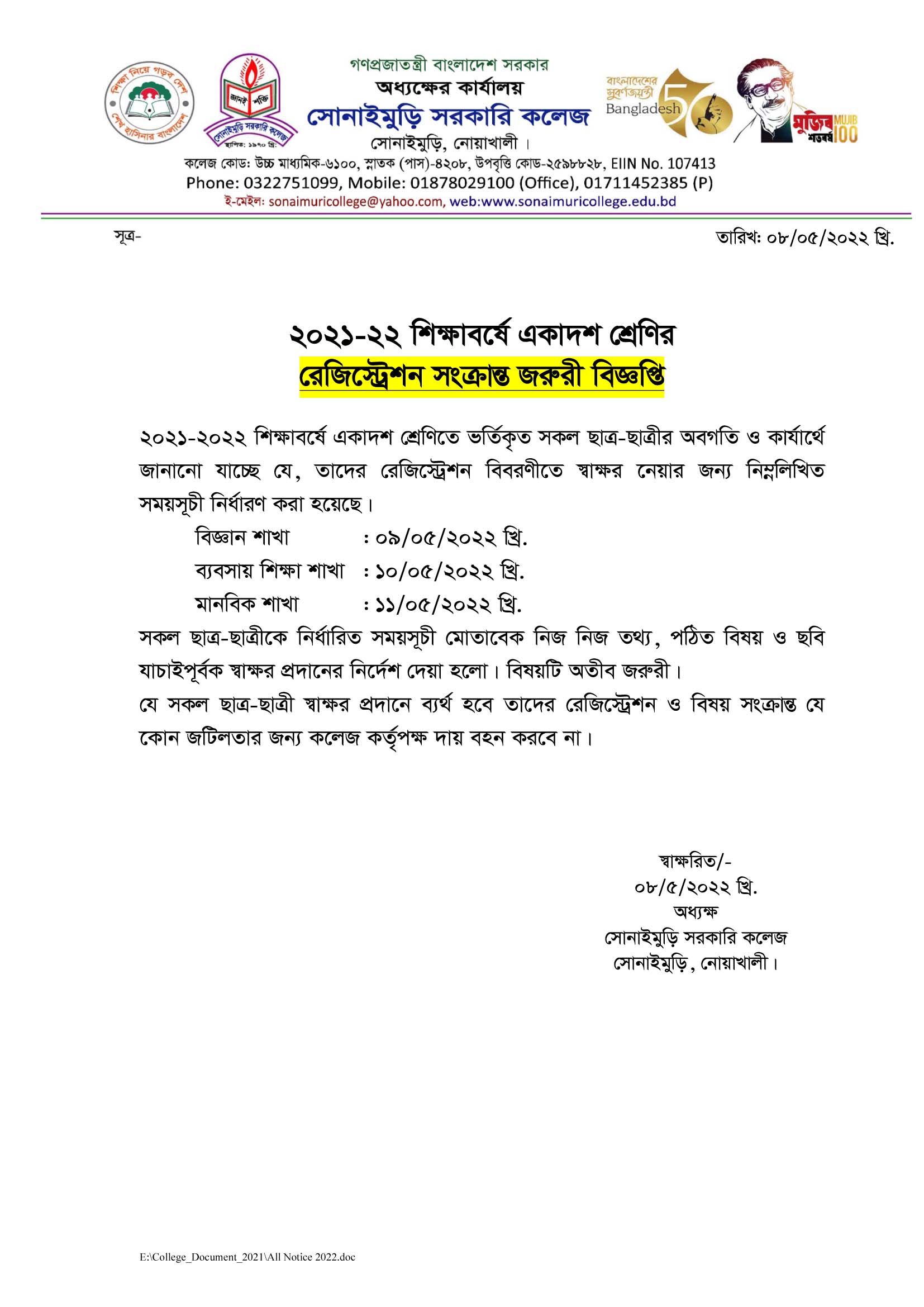 ????????? ?????? ???? ?????: ?????????, ??????: ?????????,????????, ????????? School Code : 6100 Email : sonaimurigovcollege@gmail.com Contact Number: 8801711452385