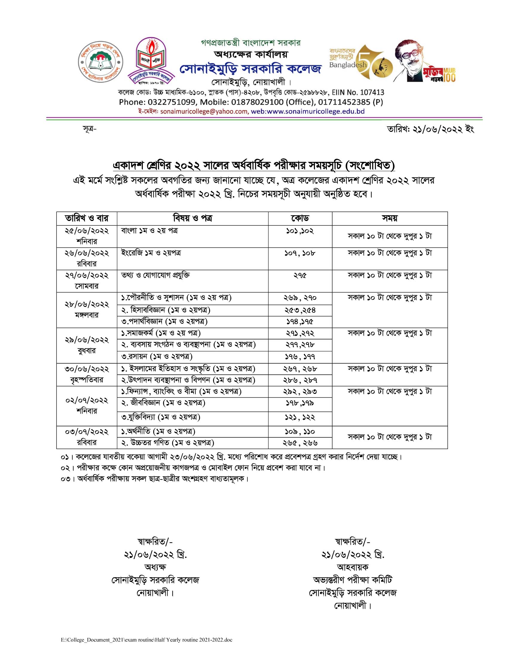 ????????? ?????? ???? ?????: ?????????, ??????: ?????????,????????, ????????? School Code : 6100 Email : sonaimurigovcollege@gmail.com Contact Number: 8801711452385