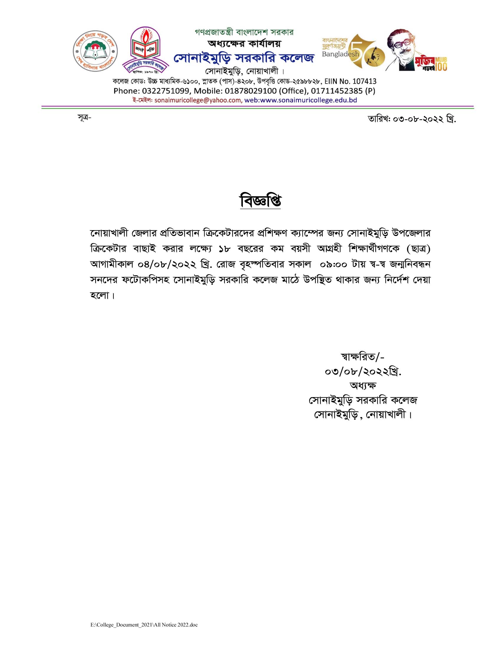 ????????? ?????? ???? ?????: ?????????, ??????: ?????????,????????, ????????? School Code : 6100 Email : sonaimurigovcollege@gmail.com Contact Number: 8801711452385