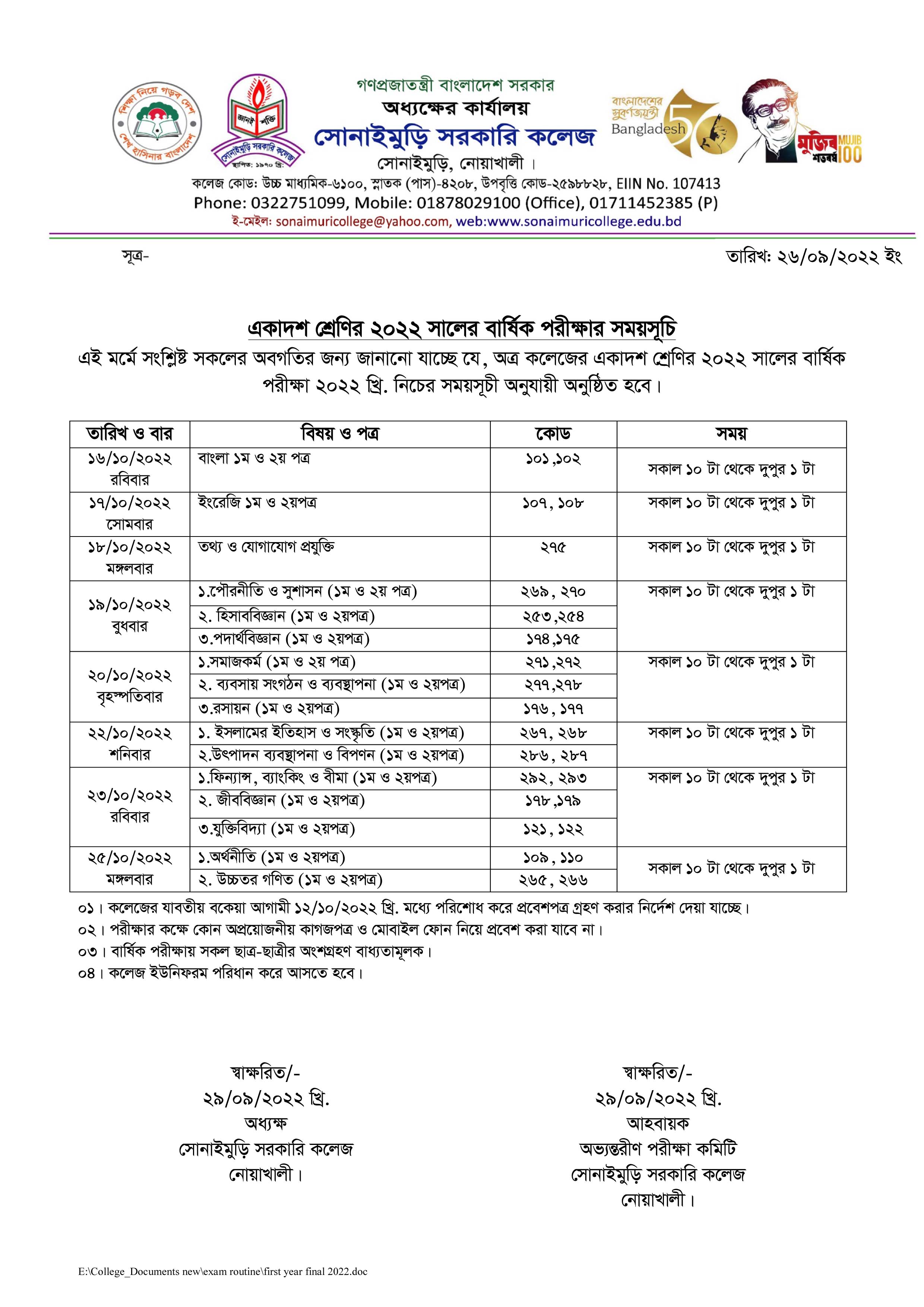 ????????? ?????? ???? ?????: ?????????, ??????: ?????????,????????, ????????? School Code : 6100 Email : sonaimurigovcollege@gmail.com Contact Number: 8801711452385