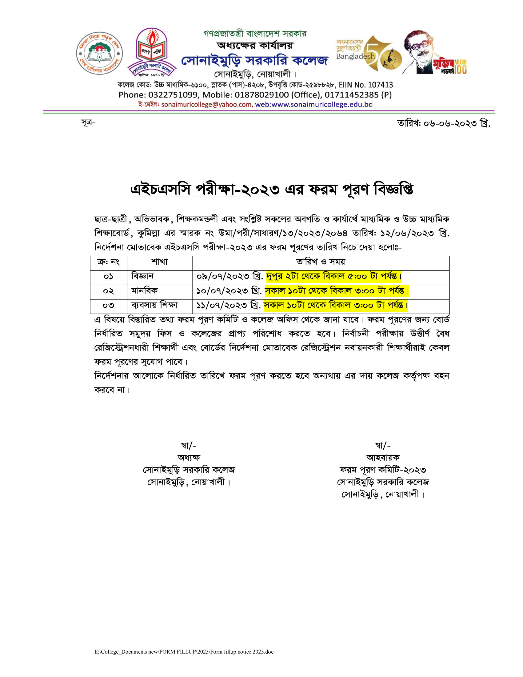 ????????? ?????? ???? ?????: ?????????, ??????: ?????????,????????, ????????? School Code : 6100 Email : sonaimurigovcollege@gmail.com Contact Number: 8801711452385
