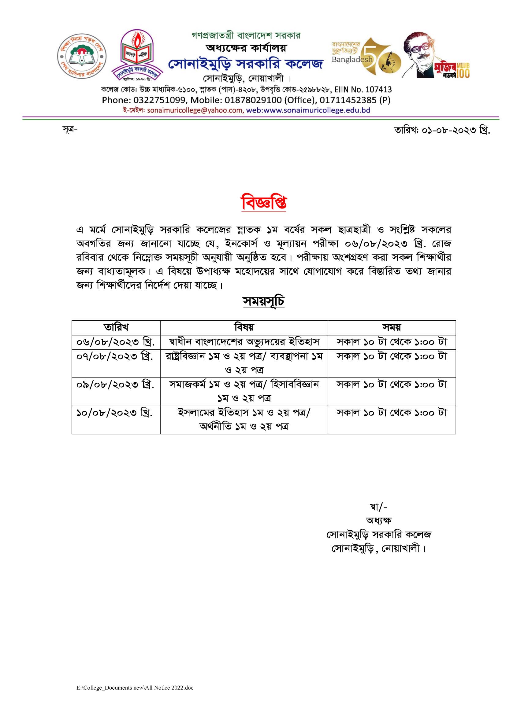 ????????? ?????? ???? ?????: ?????????, ??????: ?????????,????????, ????????? School Code : 6100 Email : sonaimurigovcollege@gmail.com Contact Number: 8801711452385