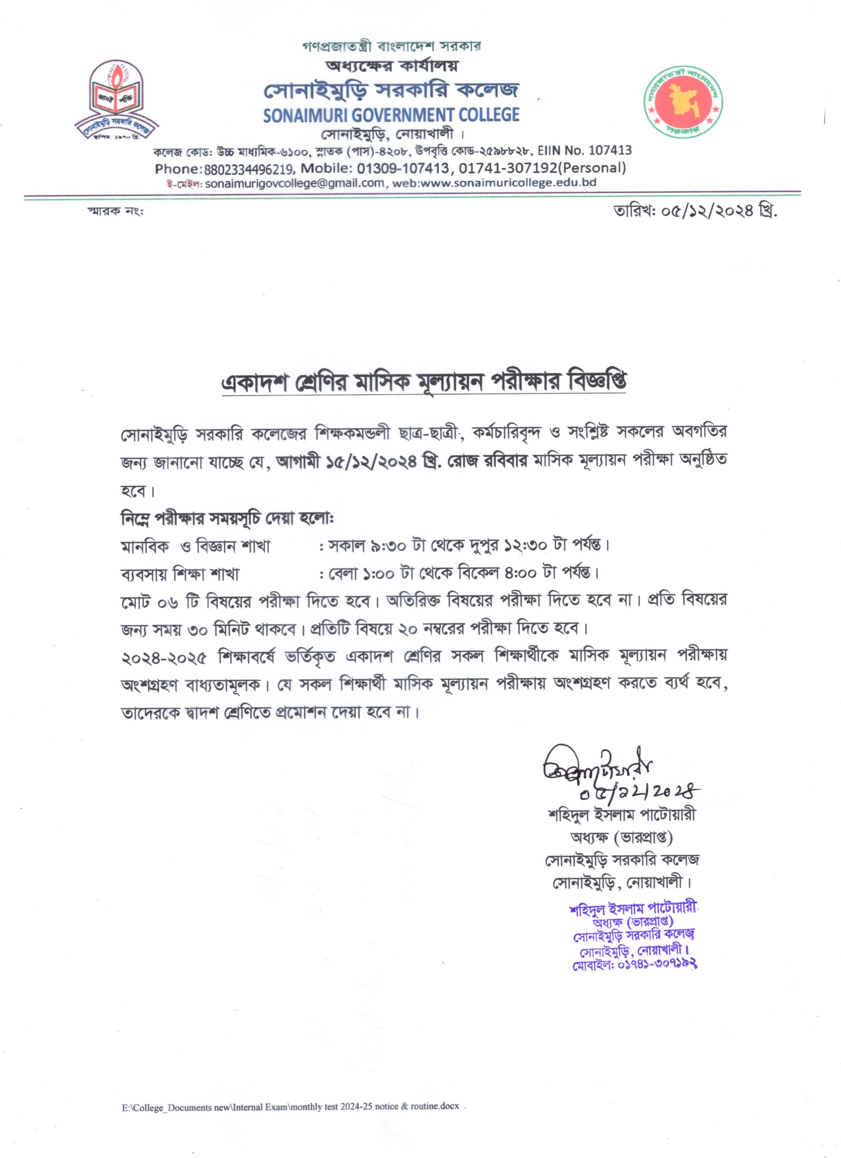 ????????? ?????? ???? ?????: ?????????, ??????: ?????????,????????, ????????? School Code : 6100 Email : sonaimurigovcollege@gmail.com Contact Number: 8801711452385