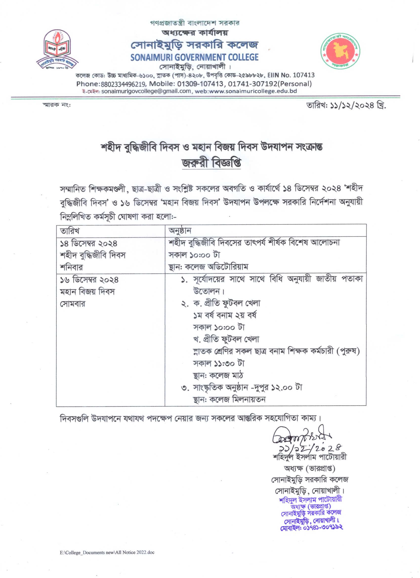 ????????? ?????? ???? ?????: ?????????, ??????: ?????????,????????, ????????? School Code : 6100 Email : sonaimurigovcollege@gmail.com Contact Number: 8801711452385