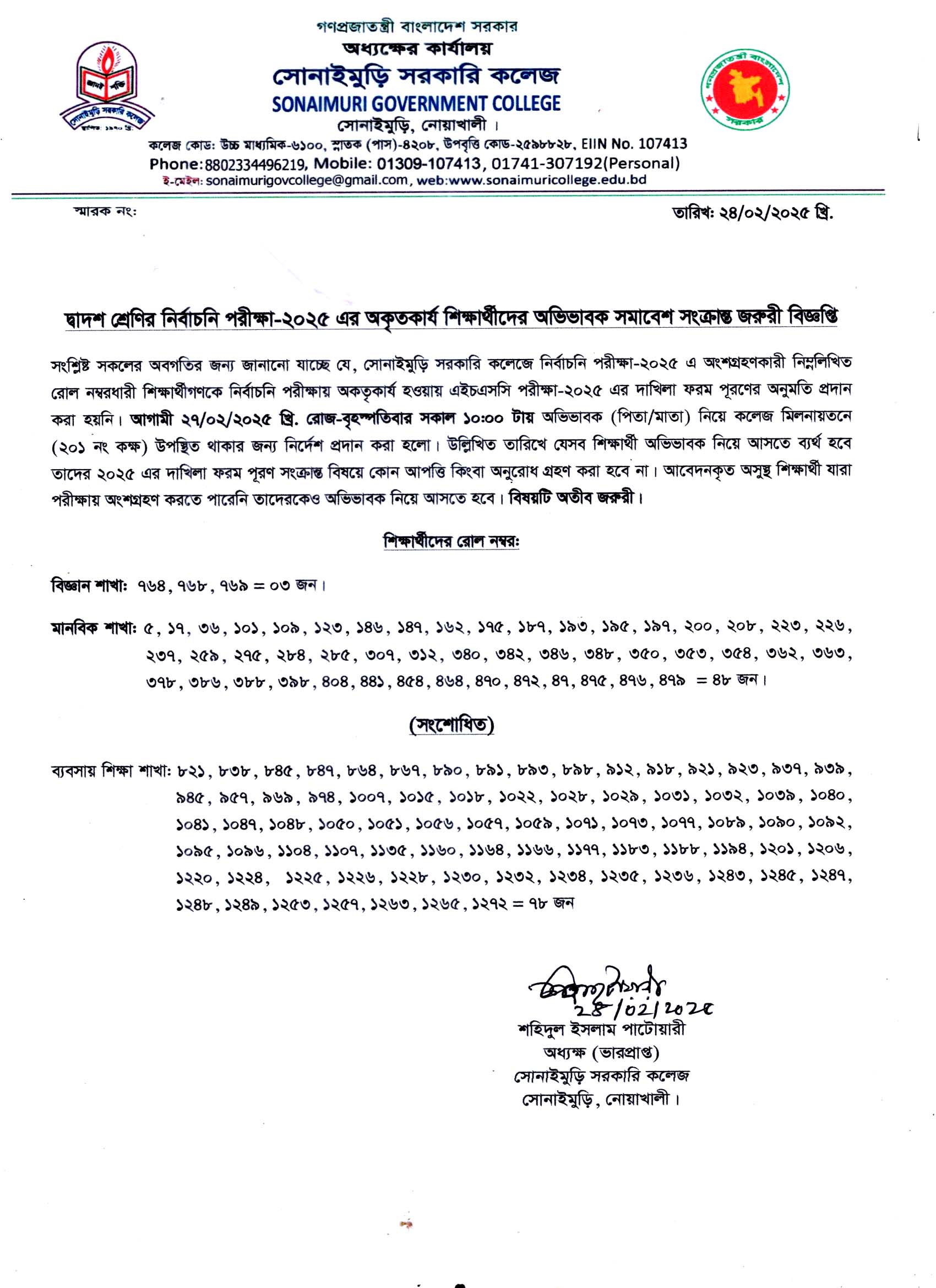 ????????? ?????? ???? ?????: ?????????, ??????: ?????????,????????, ????????? School Code : 6100 Email : sonaimurigovcollege@gmail.com Contact Number: 8801711452385