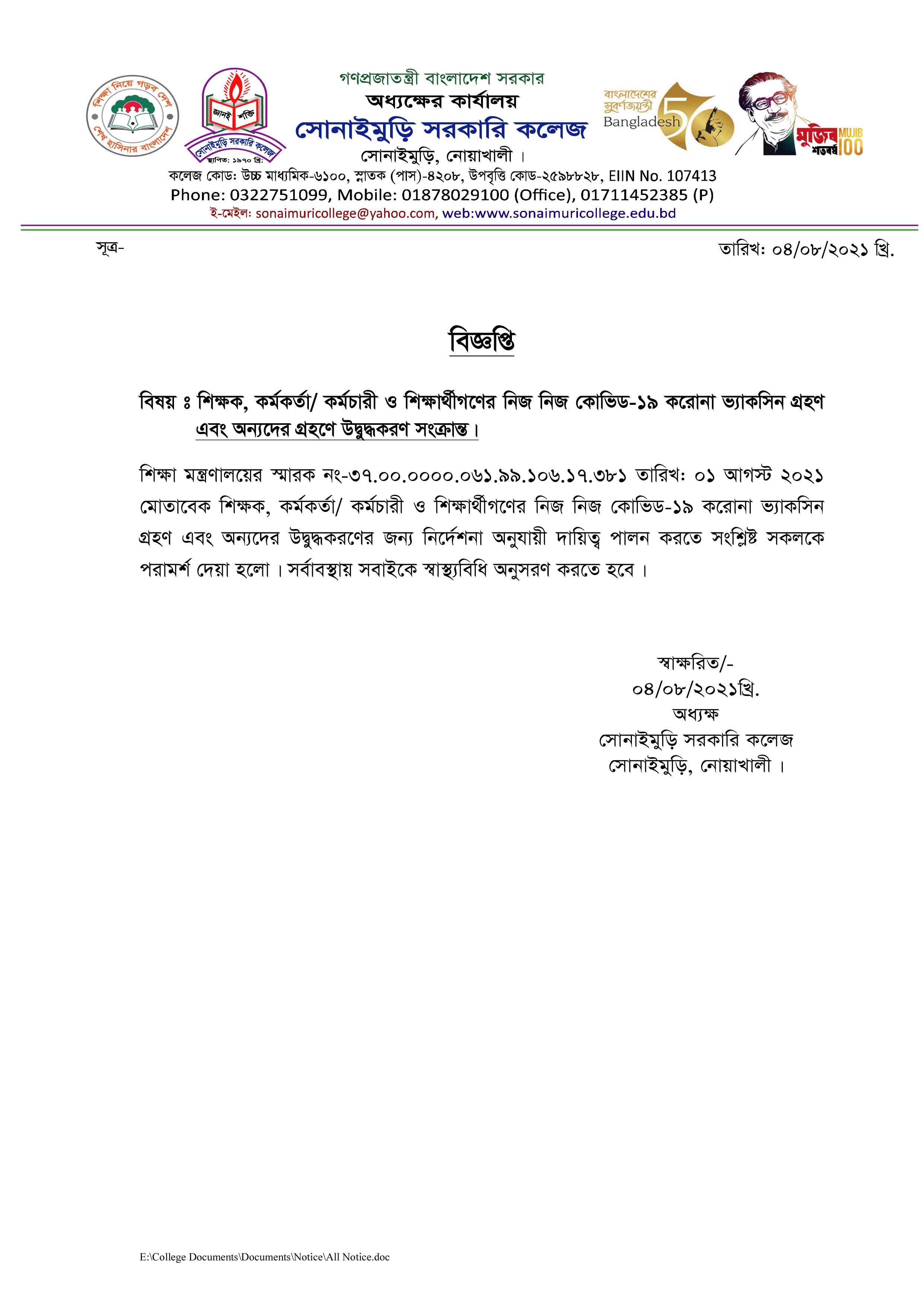 ????????? ?????? ???? ?????: ?????????, ??????: ?????????,????????, ????????? School Code : 6100 Email : sonaimurigovcollege@gmail.com Contact Number: 8801711452385