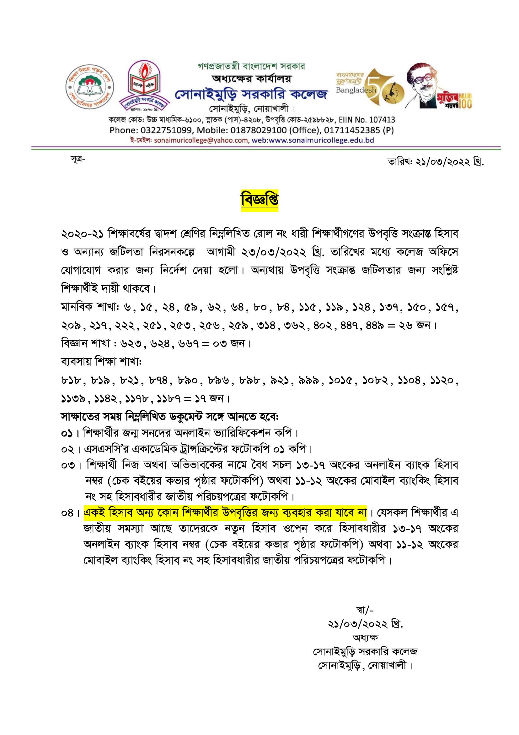 ????????? ?????? ???? ?????: ?????????, ??????: ?????????,????????, ????????? School Code : 6100 Email : sonaimurigovcollege@gmail.com Contact Number: 8801711452385