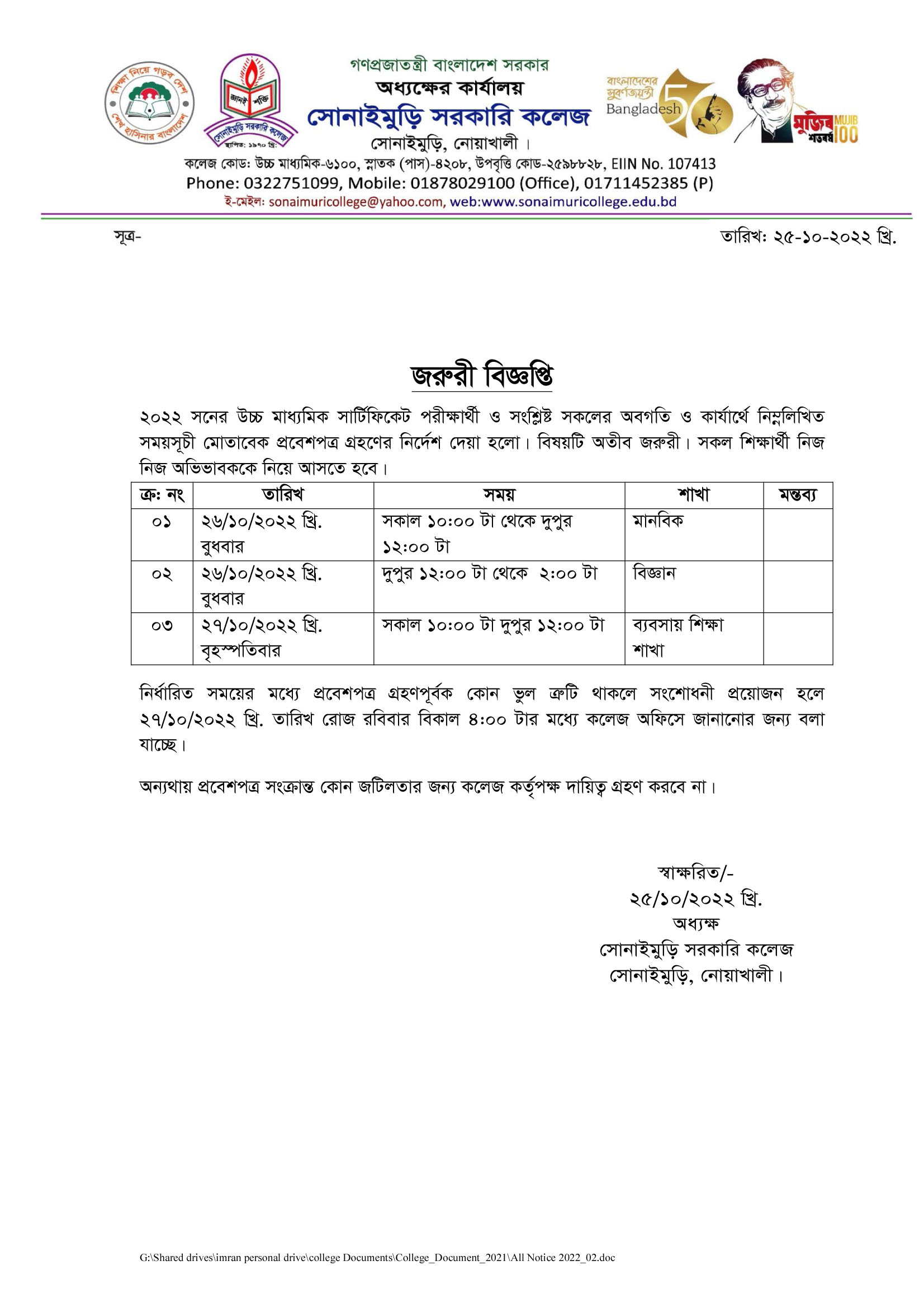 ????????? ?????? ???? ?????: ?????????, ??????: ?????????,????????, ????????? School Code : 6100 Email : sonaimurigovcollege@gmail.com Contact Number: 8801711452385