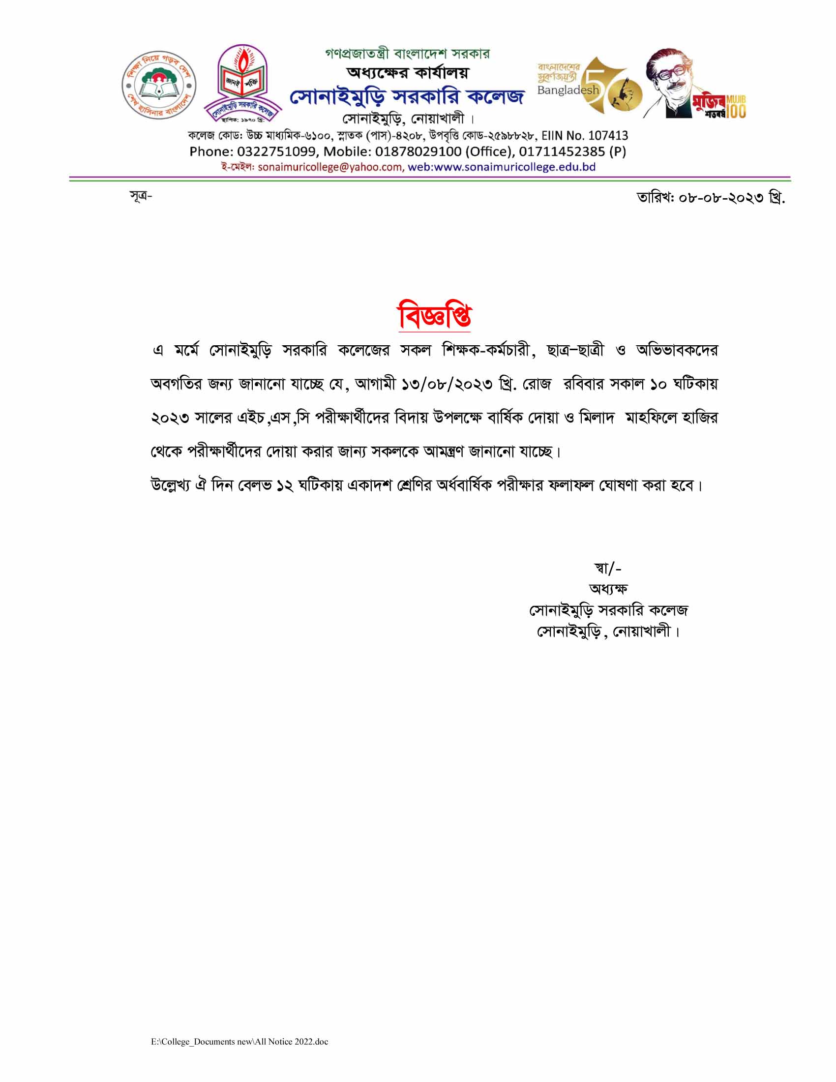 ????????? ?????? ???? ?????: ?????????, ??????: ?????????,????????, ????????? School Code : 6100 Email : sonaimurigovcollege@gmail.com Contact Number: 8801711452385