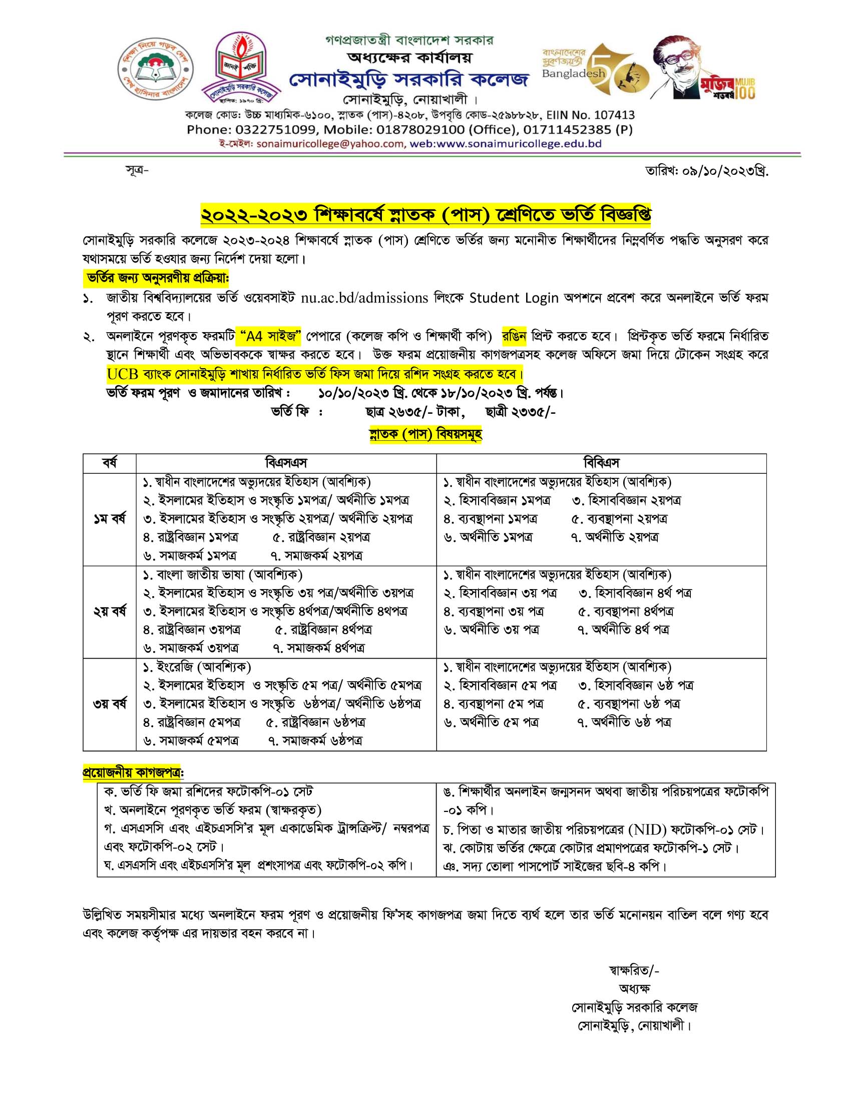 ????????? ?????? ???? ?????: ?????????, ??????: ?????????,????????, ????????? School Code : 6100 Email : sonaimurigovcollege@gmail.com Contact Number: 8801711452385