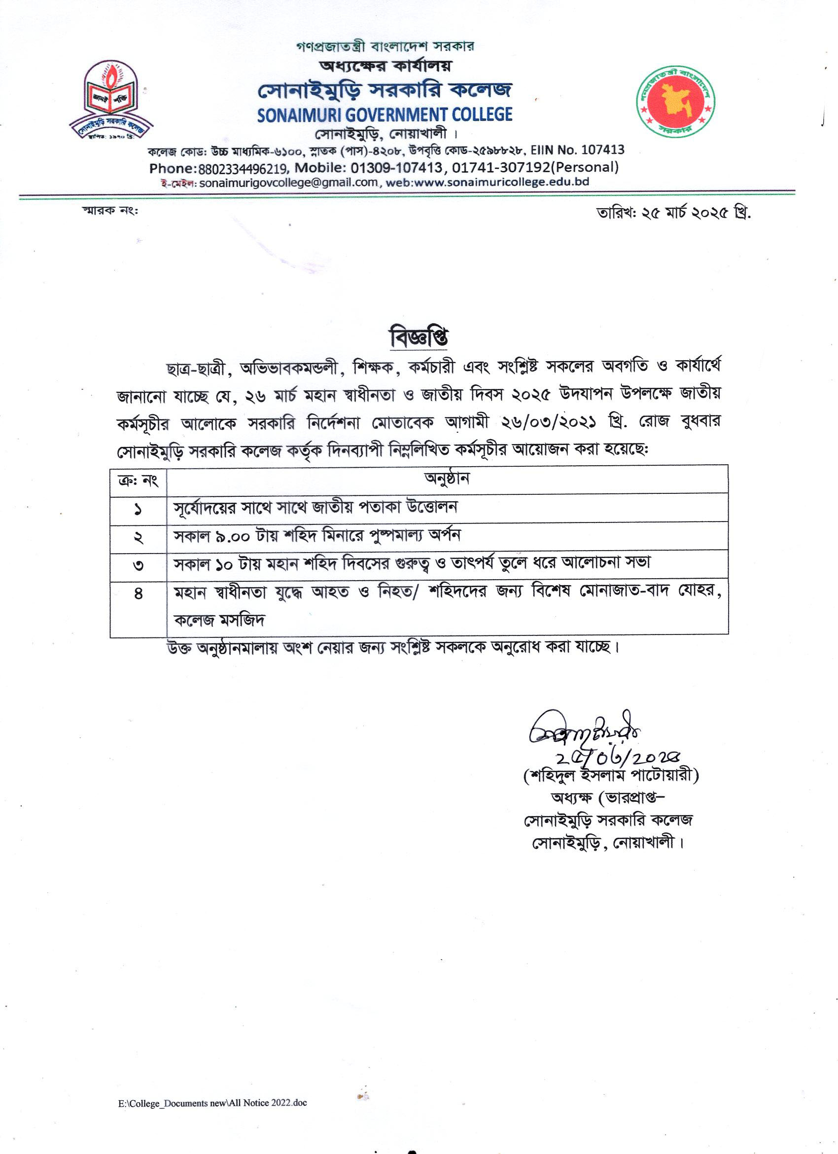 ????????? ?????? ???? ?????: ?????????, ??????: ?????????,????????, ????????? School Code : 6100 Email : sonaimurigovcollege@gmail.com Contact Number: 8801711452385