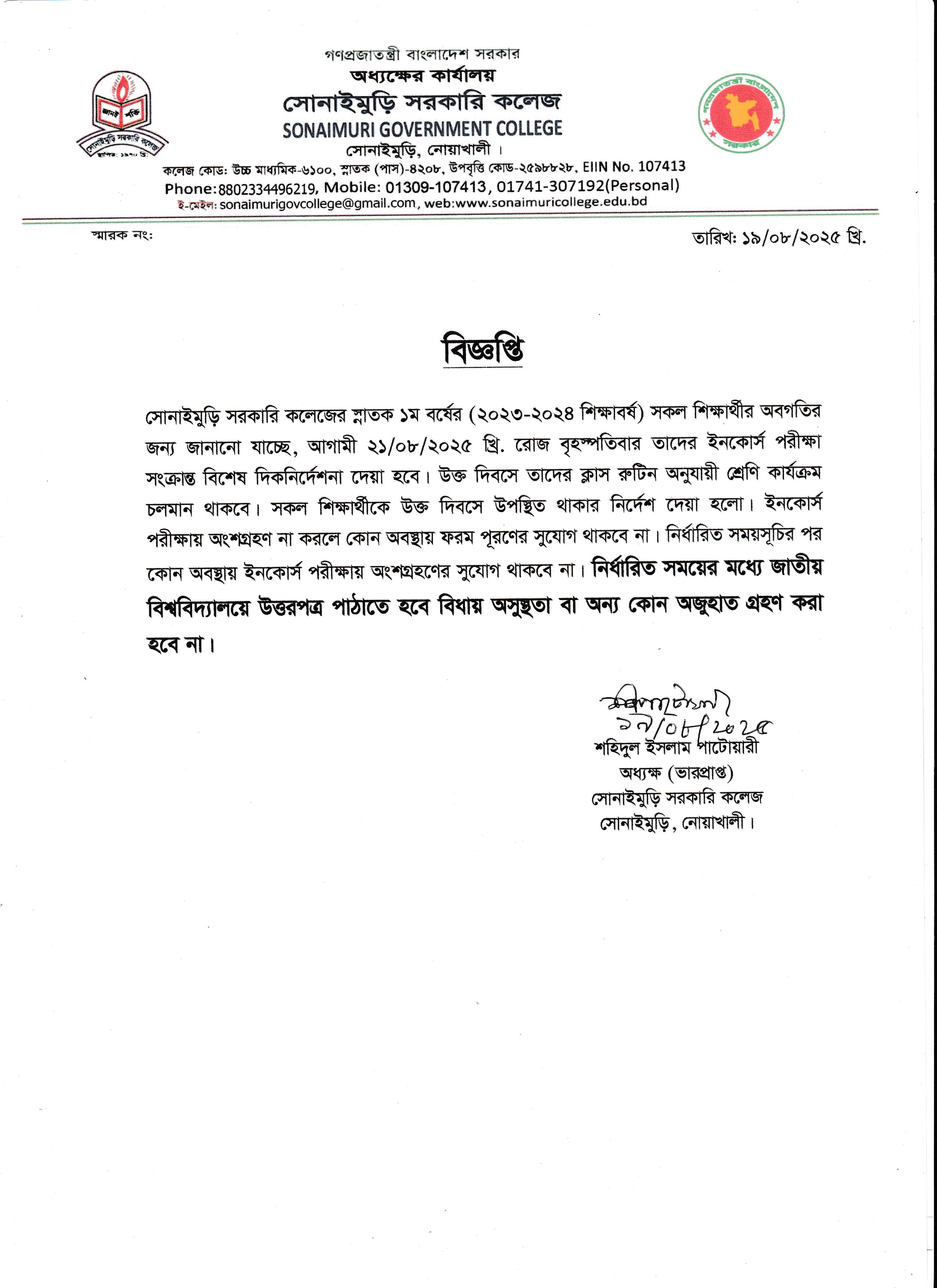 ????????? ?????? ???? ?????: ?????????, ??????: ?????????,????????, ????????? School Code : 6100 Email : sonaimurigovcollege@gmail.com Contact Number: 8801711452385