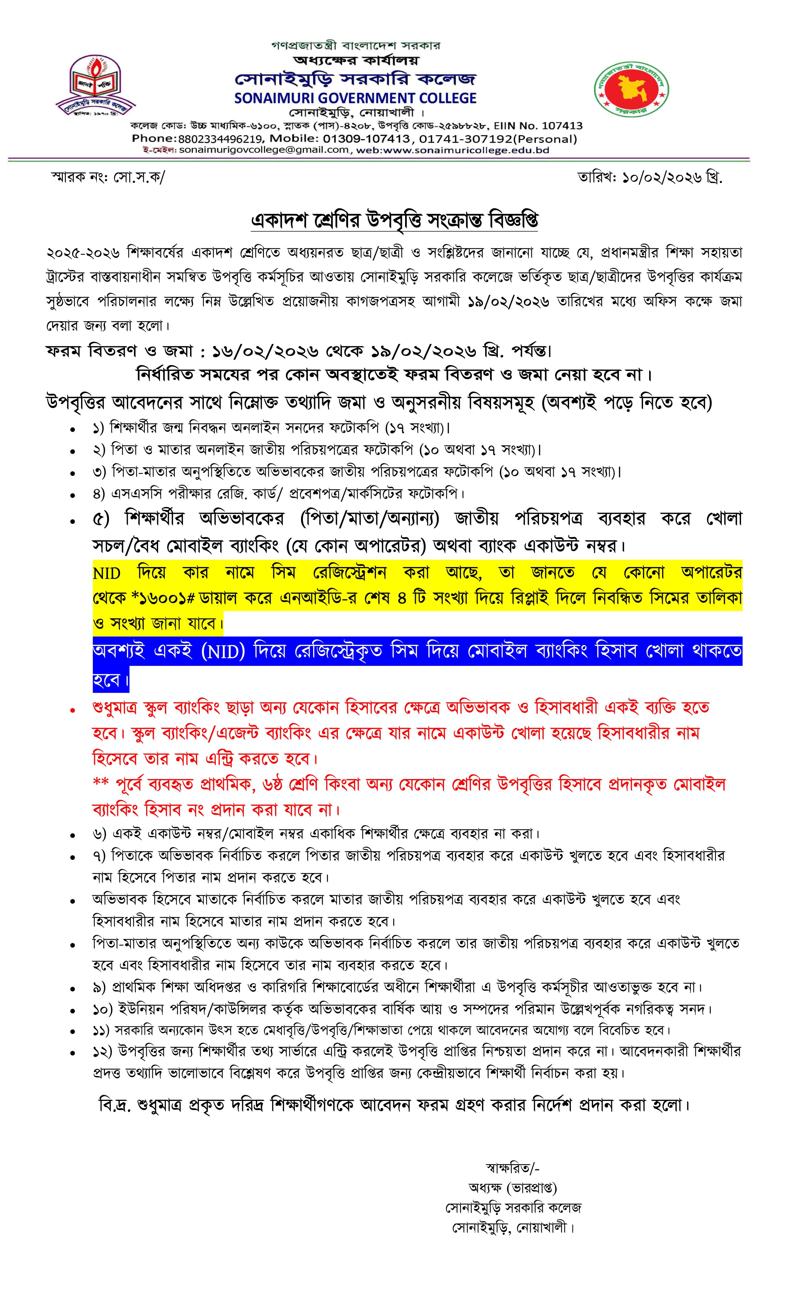 একাদশ শ্রেণির উপবৃত্তির আবেদন সংক্রান্ত জরুরী বিজ্ঞপ্তি। (Download)