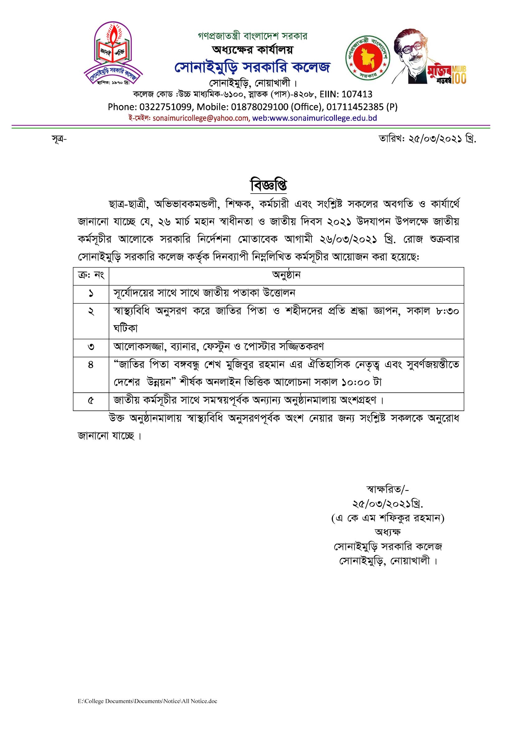 ????????? ?????? ???? ?????: ?????????, ??????: ?????????,????????, ????????? School Code : 6100 Email : sonaimurigovcollege@gmail.com Contact Number: 8801711452385
