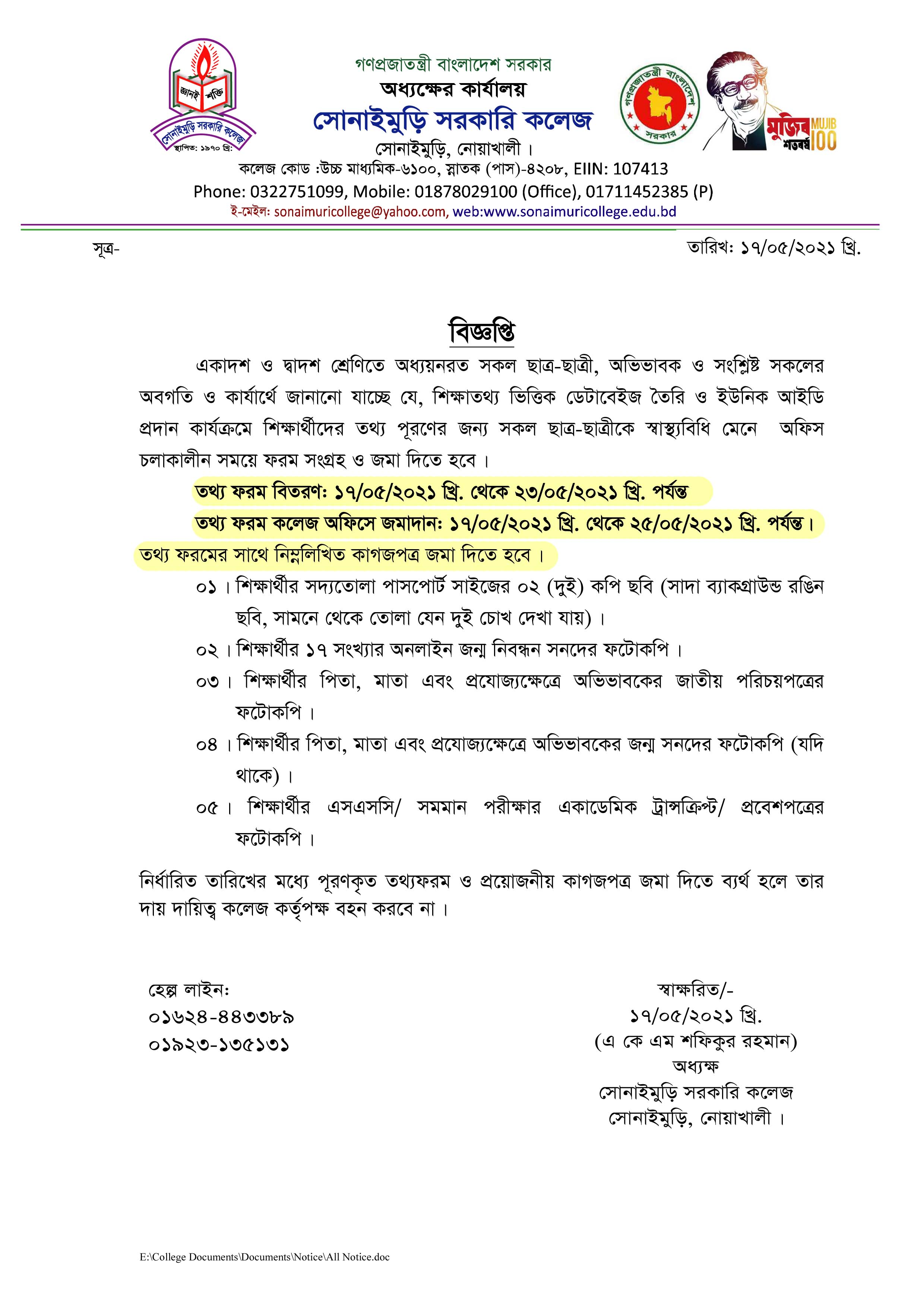 ????????? ?????? ???? ?????: ?????????, ??????: ?????????,????????, ????????? School Code : 6100 Email : sonaimurigovcollege@gmail.com Contact Number: 8801711452385