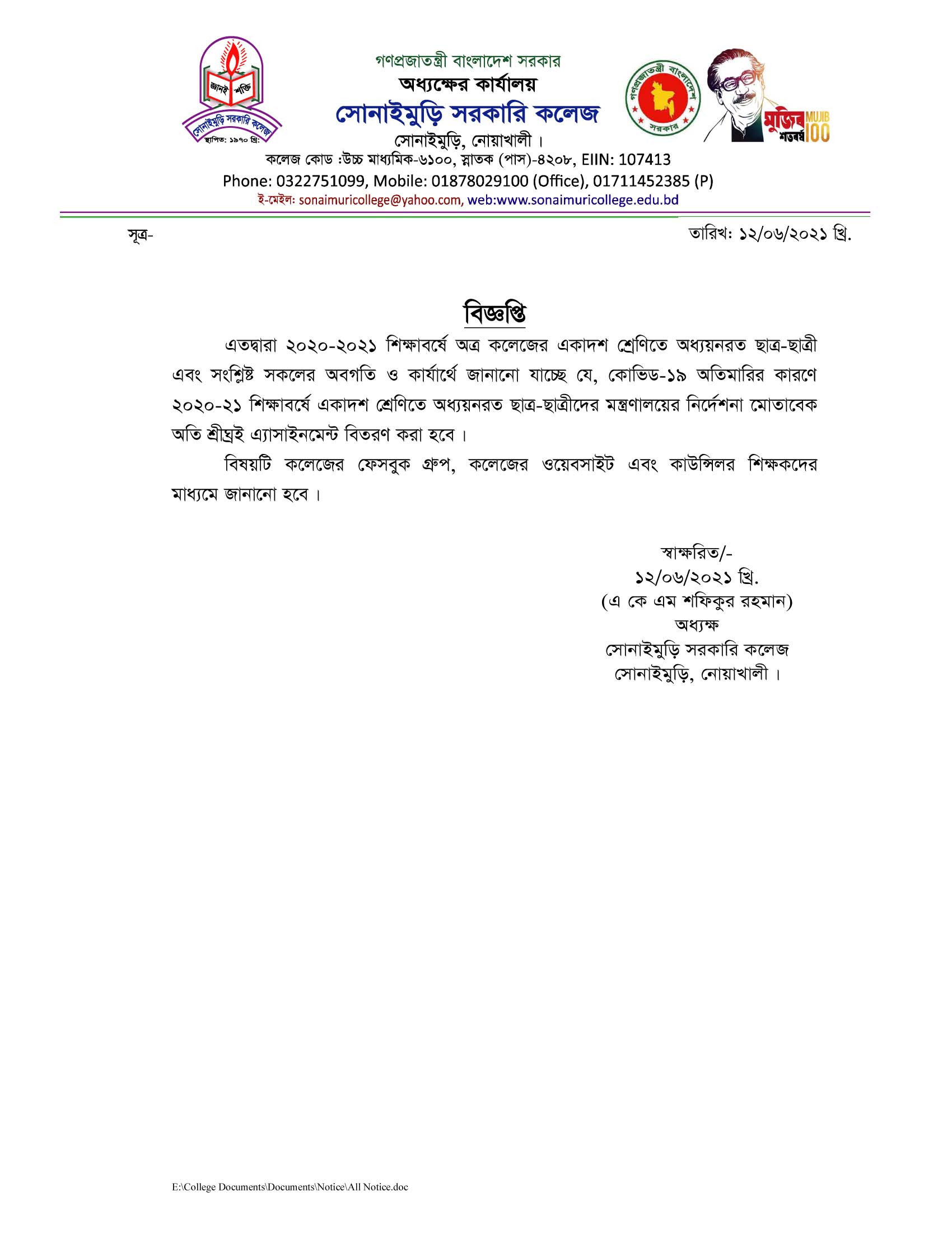 ????????? ?????? ???? ?????: ?????????, ??????: ?????????,????????, ????????? School Code : 6100 Email : sonaimurigovcollege@gmail.com Contact Number: 8801711452385